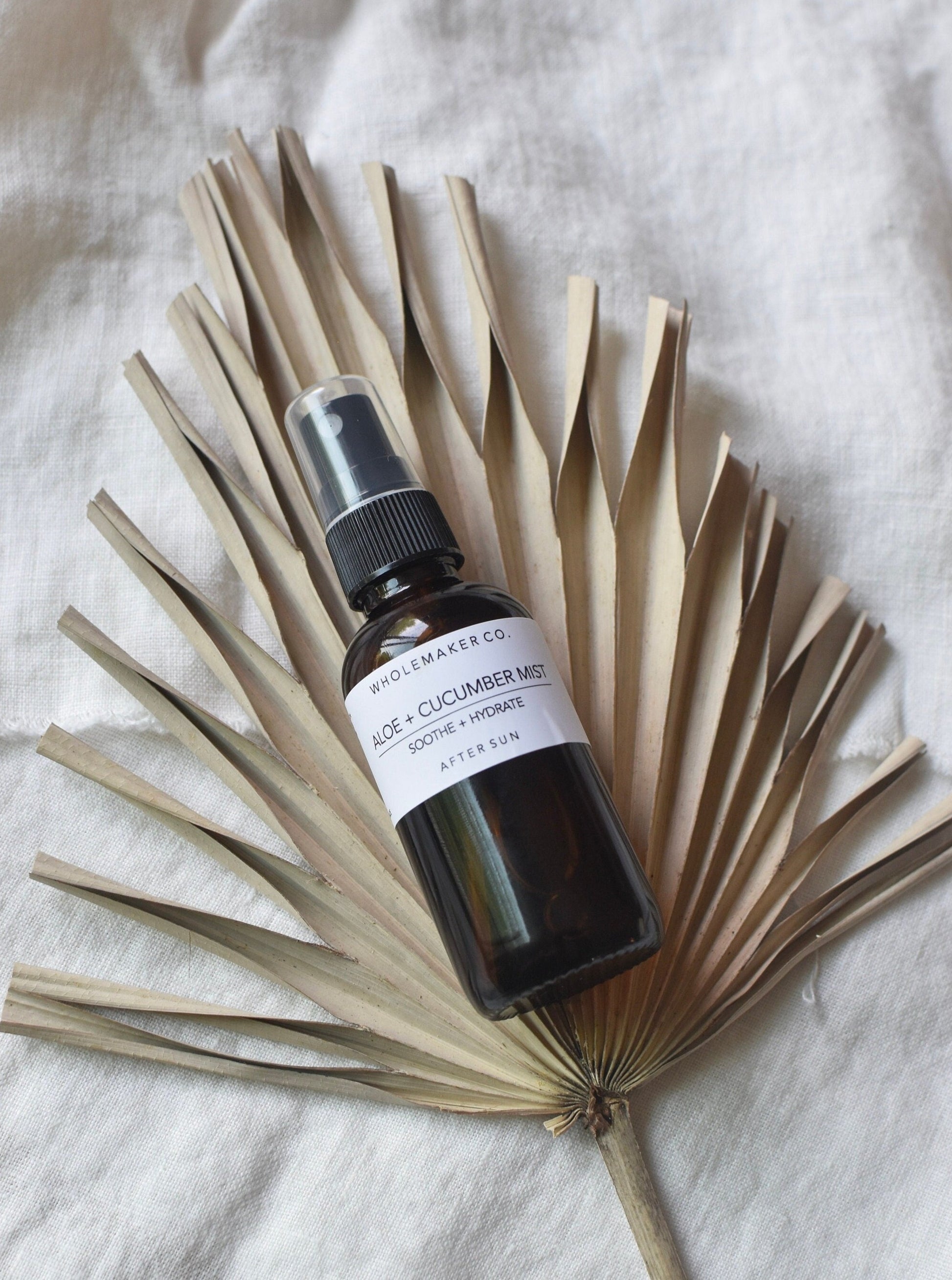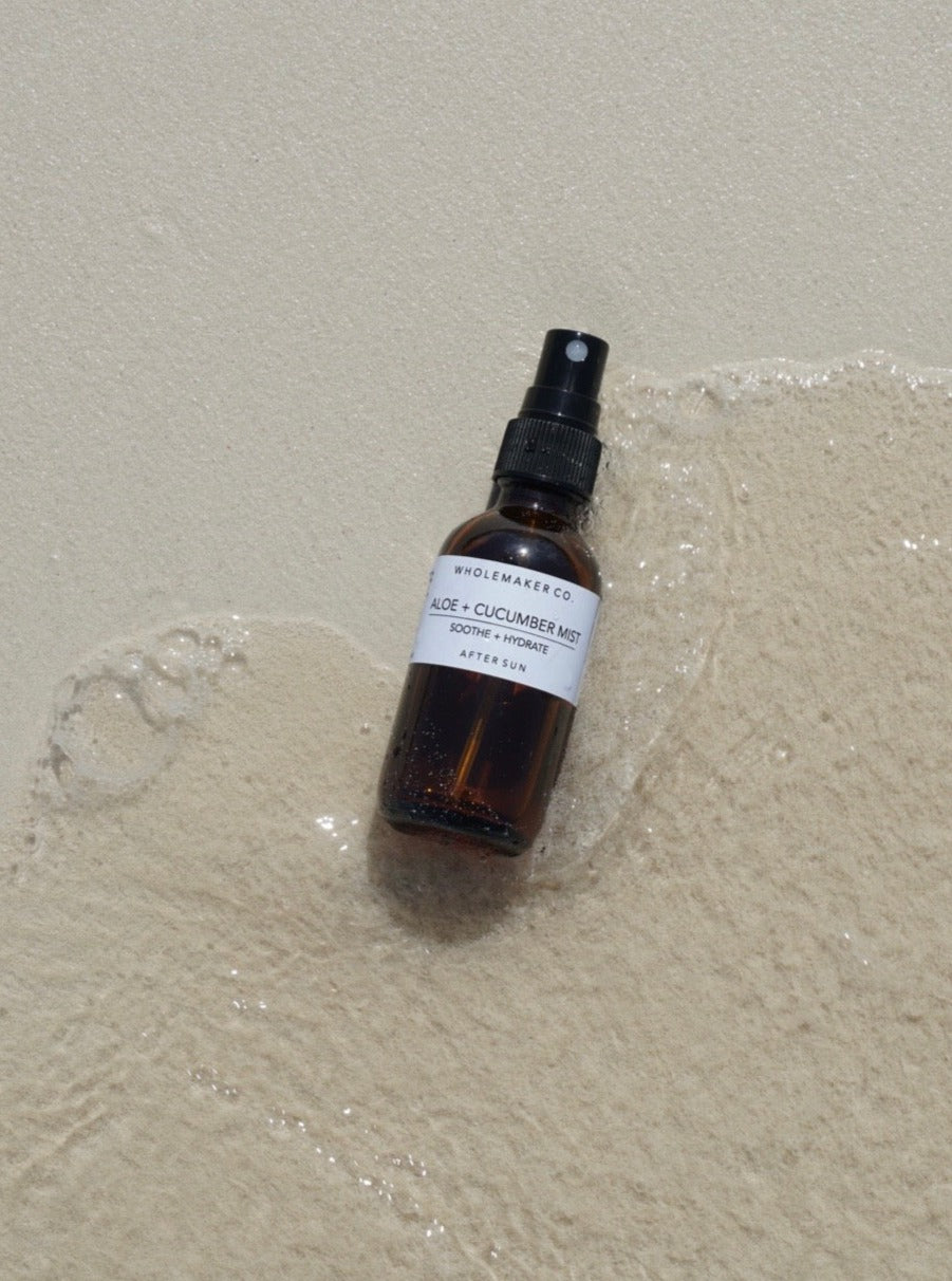 An aloe + cucumber mist to help hydrate + soothe a day of sun-kissed skin. Made from distilling fresh flowers, leaves, fruits + other plant materials, this hydrosol includes aloe, cucumber, lime, blood orange + chamomile. Ingredients that are gentle + anti-inflammatory, helping balance + nourish the skin.