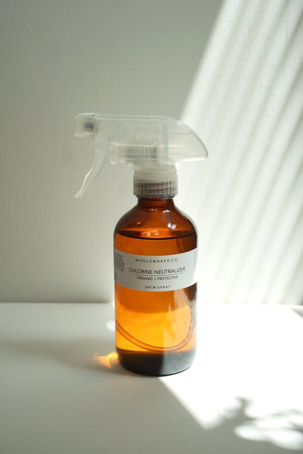 Spray onto skin, hair + swimsuit just before entering the water to help neutralize chlorine on contact. After swimming, spray again before rinsing in the shower to neutralize lingering chlorine and minimize irritation. Safe for daily use, every swim + all ages.
