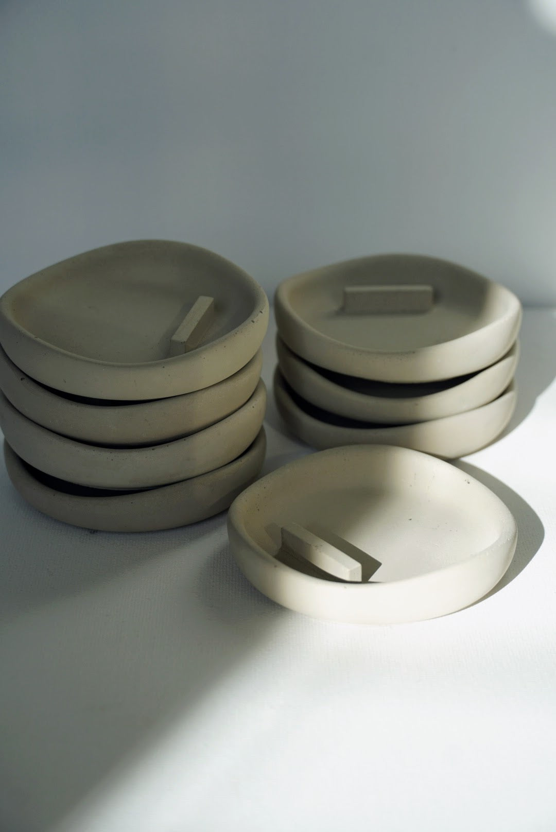 A handmade, firesafe, concrete palo santo burner that's the perfect addition to any space. Rest the burning/smoldering tip of the palo santo stick on the ledge inside the dish to catch ashes. Overtime that section of the dish will become colored by the fire + ash from the palo santo stick, giving it individual character + charm.