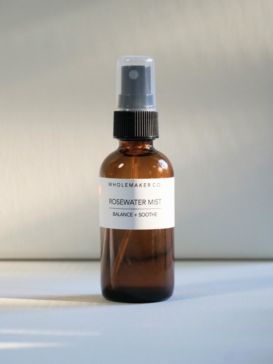 By misting the skin with a hydrosol like Rosewater Mist, it can help bring the skin back to balance. Staying in that 5 range will help protect the skins acidic mantel, which then protects from bacteria + breakouts!