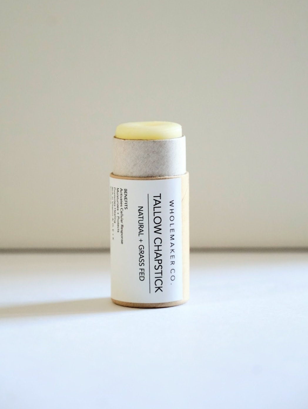 Carrying clean + minimal ingredients, the Tallow Chapstick is moisturizing, promotes healing, repairs damaged skin, holds anti-inflammatory properties + leaves the skin feeling nourished + calm. It’s perfectly creamy + doesn’t leave an oily residue.