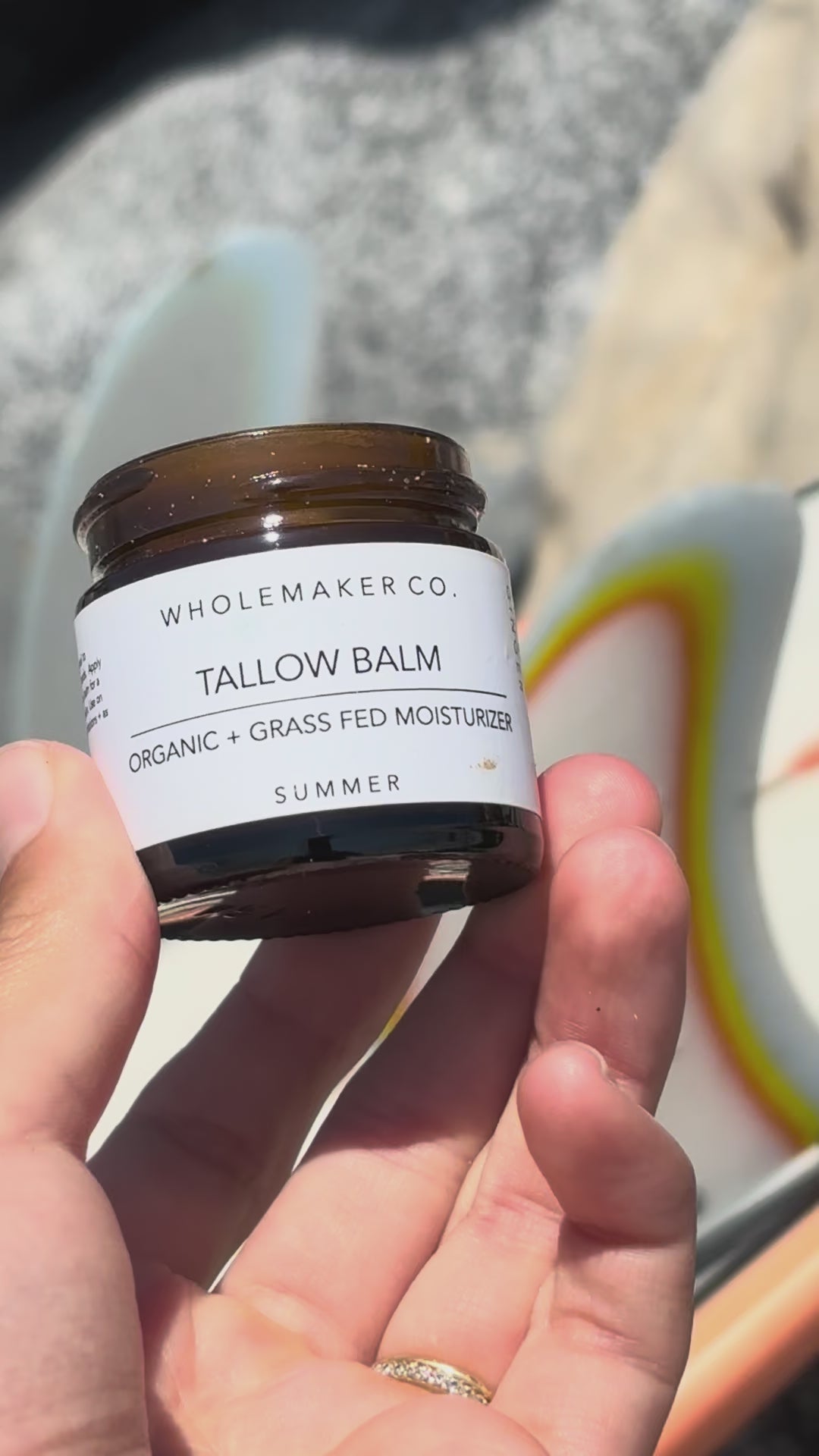 The Summer Tallow is great as an all-purpose balm. Good as a simple everyday moisturizer, but also influential + healing for those with skin sensitivities + irritations. Use on hands, feet, elbows + full body.