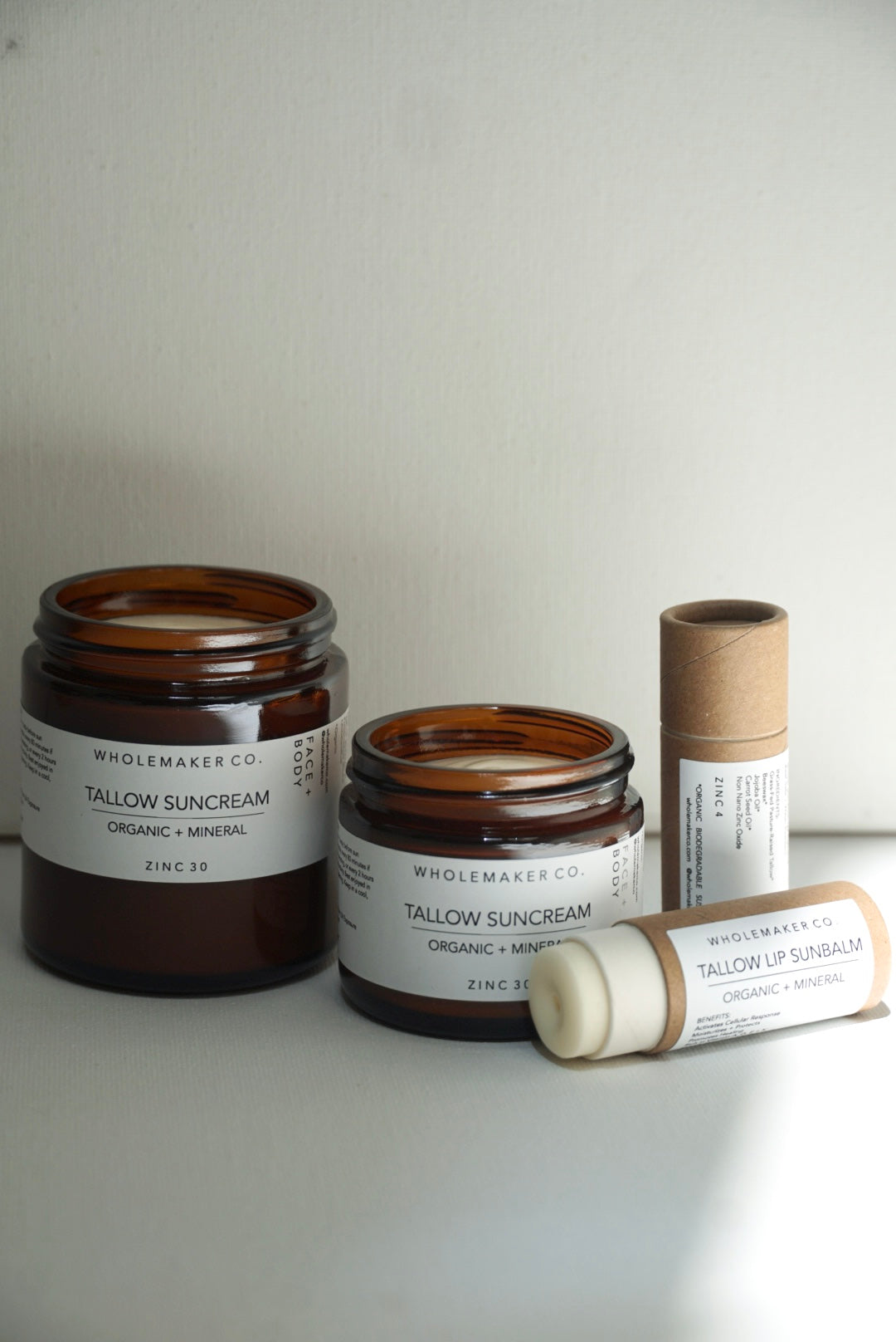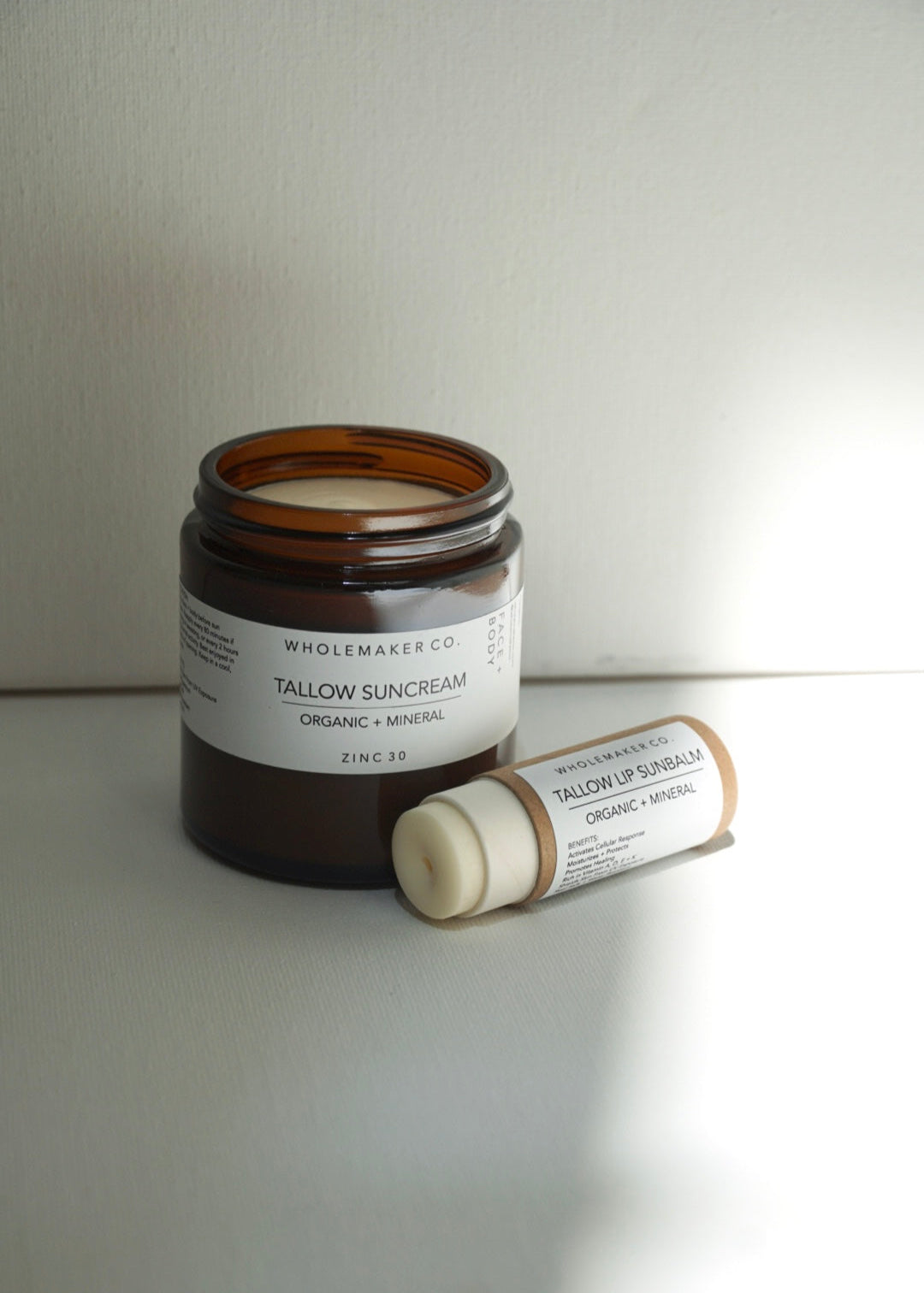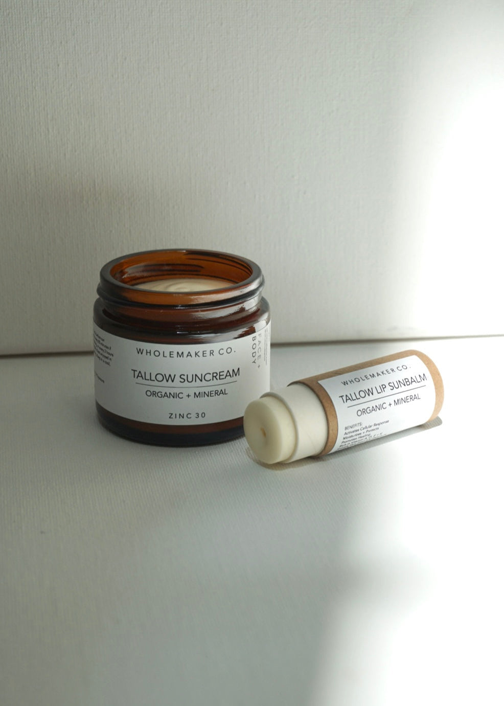 This gentle, mineral-based duo is crafted to protect your whole body from sun exposure while supporting the skin barrier. With ingredients like organic grass-fed tallow, carrot seed oil, and non-nano zinc oxide—it’s safe for the whole family. The Tallow Suncream has a zinc level of 30, and the Tallow Lip Sunbalm has a gentle level 4.
