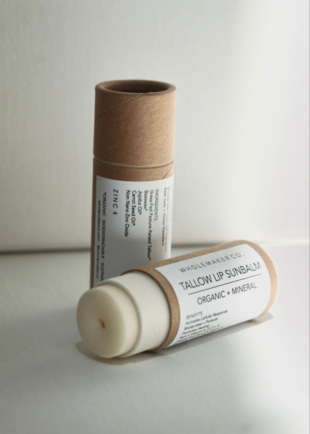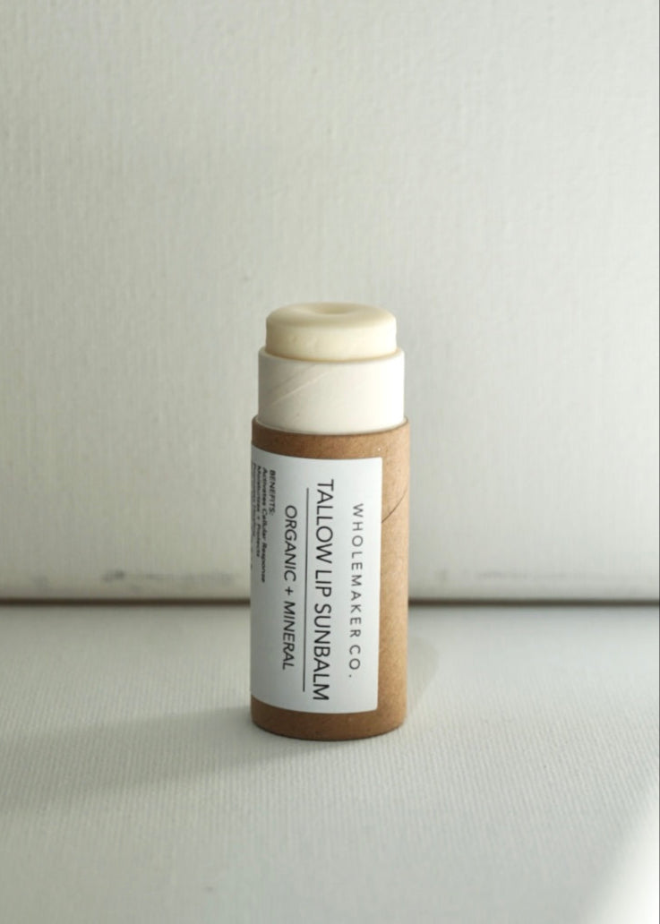 Made with minimal, clean ingredients, the Tallow Lip Sunbalm offers a gentle mineral shield, level 4, for sun protection. It deeply moisturizes, supports healing, helps repair damaged skin, and calms inflammation—leaving skin nourished and soothed. The texture is perfectly creamy without an oily residue.
