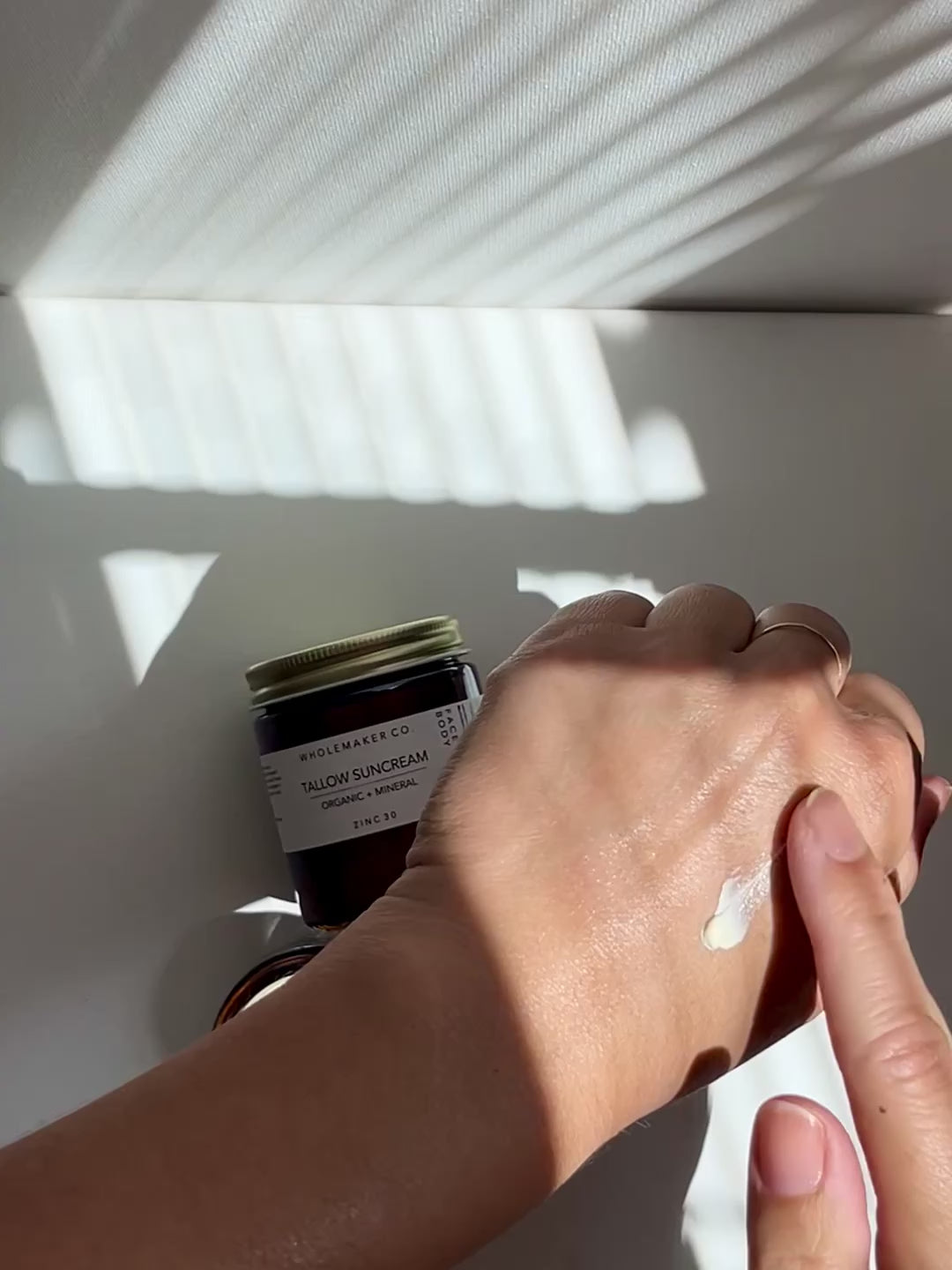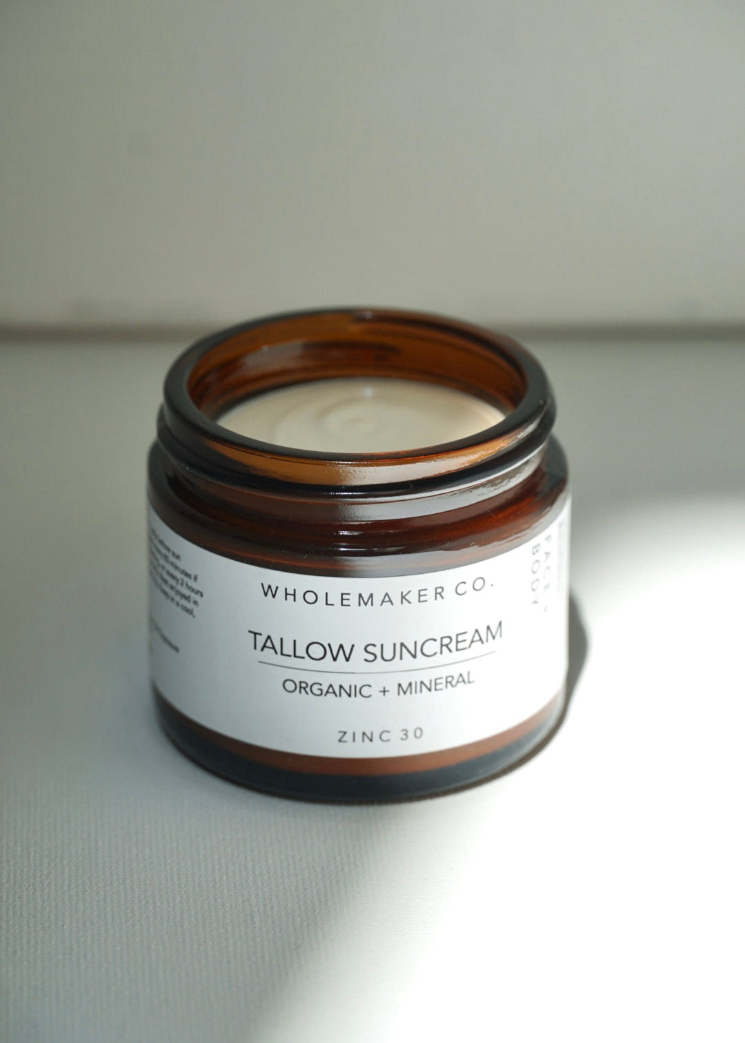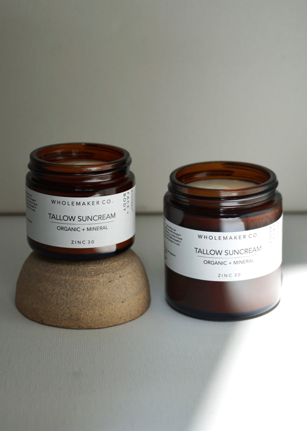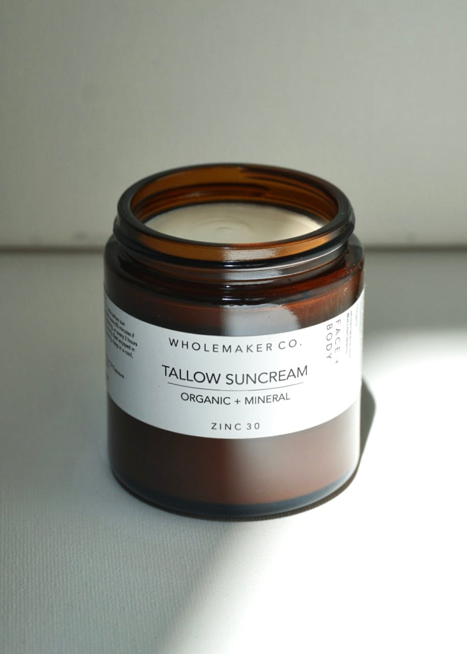 A suncream that protects from the sun while it nourishes. This sheer-like, mineral-based formula provides a level 30 sun protection while supporting your skin barrier with the cleanest ingredients. Made only with tallow, beeswax, jojoba oil, carrot seed oil, aloe hydrosol, non-nano zinc oxide, and probiotic ferment. Gentle enough for sensitive skin, and safe for the whole family.